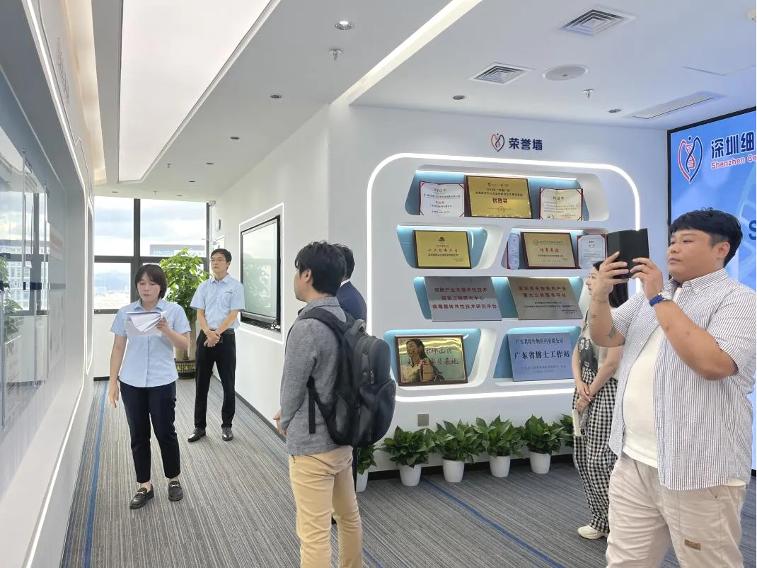; Zhang Fan from the Sales Department of Smart IC Co., Ltd.; Wang Jiannan, General Manager of Shenzhen Xinyang Investment Management Co., Ltd., Chen Lili, Assistant to the General Manager of the aforementioned company; Yang Jun, Industry General Manager of Shenzhen Yawei Information Technology Group Co., Ltd.; Cheng Bing, Operations Manager of China-Canada Enterprise Innovation Centre; and Chen Qi, General Manager of henzhen Idea Touch Information Consulting Co., Ltd. visited Shenzhen Cell Valley Biomedical Co., Ltd. for inspection and exchange. Shenzhen Cell Valley's Chairman Professor Shi Yuanyuan, Chief Scientist Professor Wang Jianxun, Deputy General Manager Tang Xiaomeng, General Office Director Luan Zhishi, Assistant to the Chairman Wei Zheng, Sales Department Head Yang Borui, Sales Department Supervisor Yan Chengkun, and Marketing Department Supervisor Gulnara Halim warmly received them. Both parties held discussions on planned cooperation directions between China and Japan.