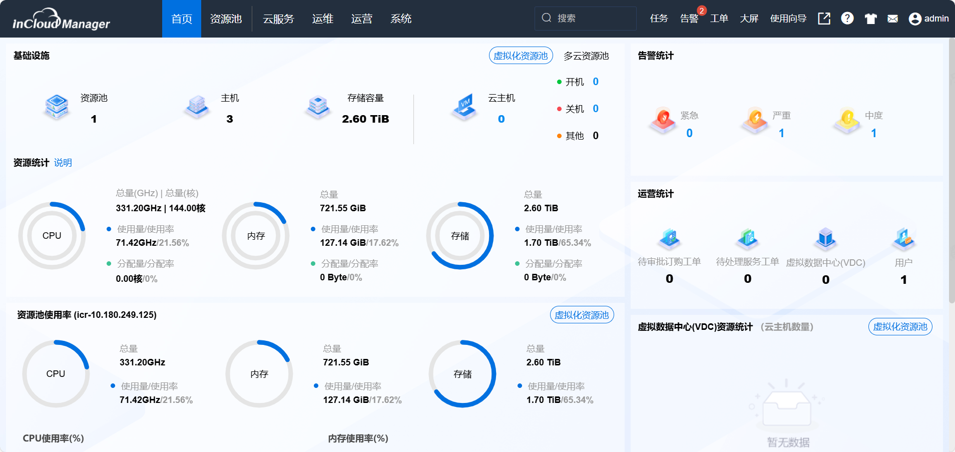 1、高效易用的运维管理:(1)批量创建、策略分发、快速创建等虚拟机高效运维功能,支持分钟级云平台批量开关机;(2)统一镜像管理;(3)虚拟机运维是私有云核心,InCloud Manager具有VMware的易用性操作体验