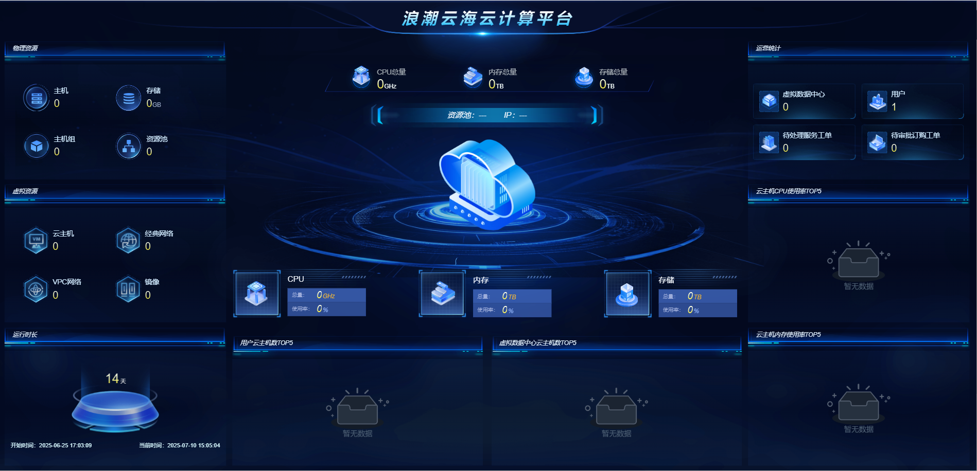 3、精细化运营:给予自定义报表和审批流程功能;支持可视化日志分析、一键巡检、计量计费,且可以基于AI大模型,针对云平台资源进行预测,用户可以根据此制定后续扩容和运营计划。